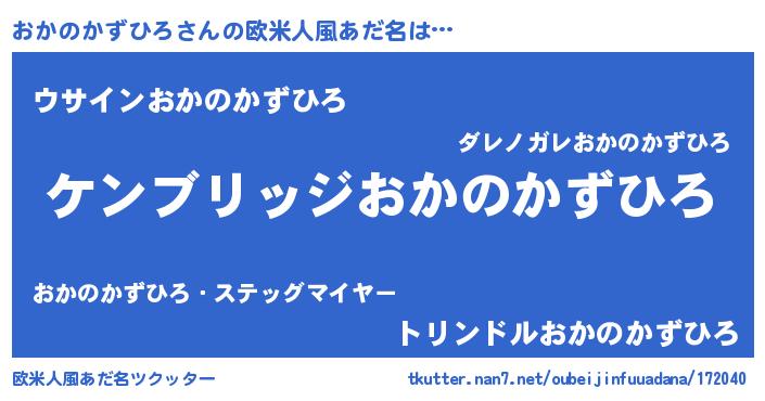 | 男性向けラノベタイトル風あだ名 | 『Re:おかのかずひろから始める異世界生活』 |