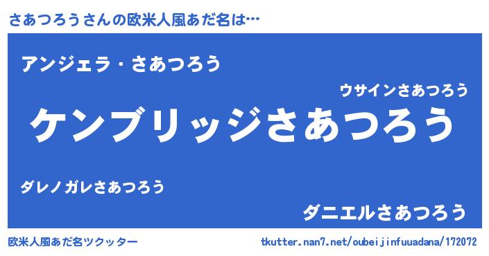 | 意味不明あだ名 | 『自称さあつろう』『永久保存さあつろう』 |
