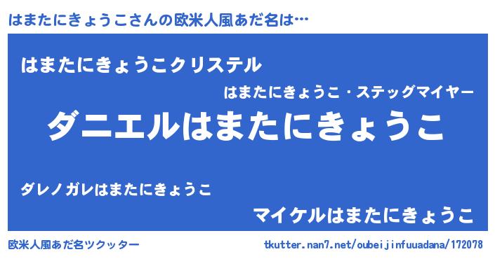 | 男性向けラノベタイトル風あだ名 | 『おまえをオタクにしてやるから、俺をはまたにきょうこにしてくれ! 』 |
