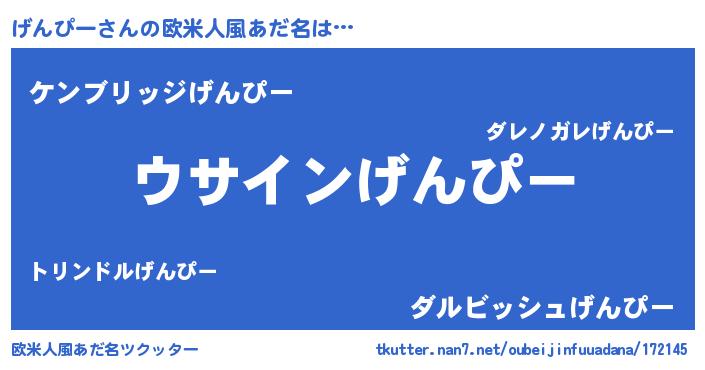 | 男性向けラノベタイトル風あだ名 | 『ダンジョンにげんぴーを求めるのは間違っているだろうか』 |