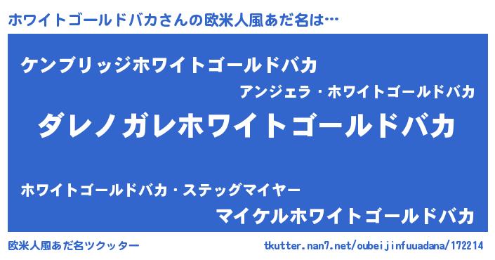 | 男性向けラノベタイトル風あだ名 | 『この素晴らしい世界にホワイトゴールドバカを!』 |