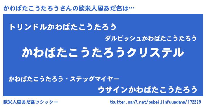 | 男性向けラノベタイトル風あだ名 | 『やはりかわばたこうたろうの青春ラブコメはまちがっている 』 |