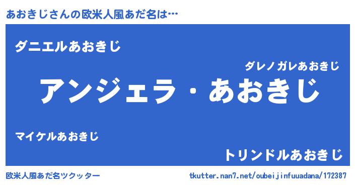| 男性向けラノベタイトル風あだ名 | 『あおきじに滅ぼされるだけの簡単なお仕事です』 |