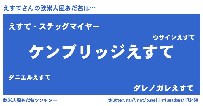 | 男性向けラノベタイトル風あだ名 | 『Re:えすてから始める異世界生活』 |