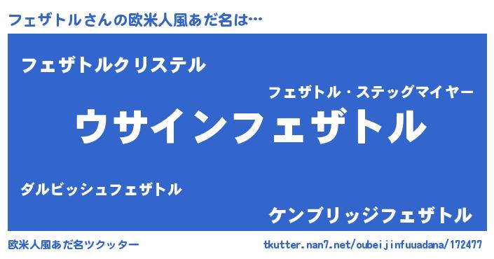| ヒーロー風カッコイイあだ名 | 『暗黒騎士フェ』『最強戦士フェザトル』 |