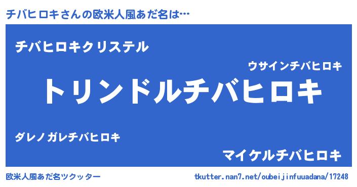 | 男性向けラノベタイトル風あだ名 | 『チバヒロキ~年齢イコール彼女いない歴の魔法使い~』 |