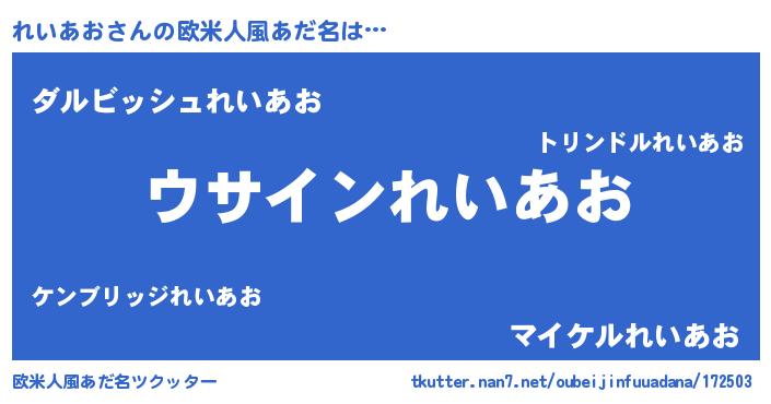 | 女子向けラノベタイトル風あだ名 | 『れいあおの卵を拾いまして』 |