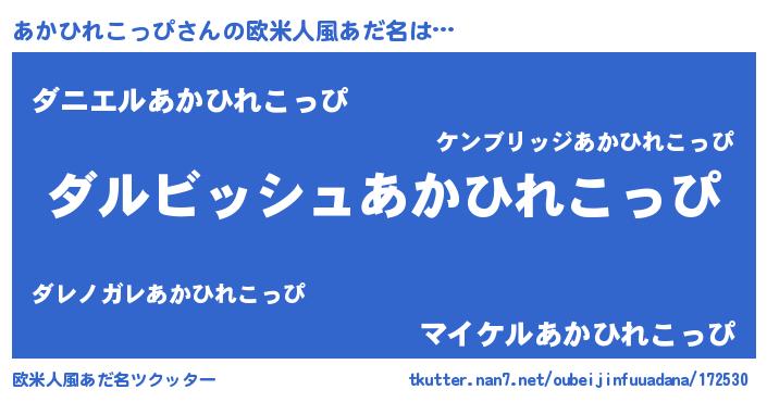 | 男性向けラノベタイトル風あだ名 | 『あかひれこっぴという概念が存在しない退屈な世界 』 |