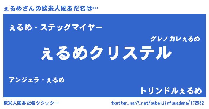 | ファンタジー風あだ名 | 『エターナルェルメー』『カークェルラー』 |