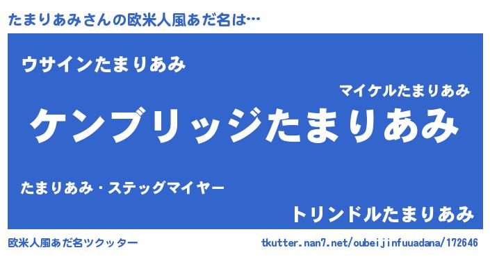 | 意味不明あだ名 | 『自称たまりあみ』『ペロリンたまりあみ』 |