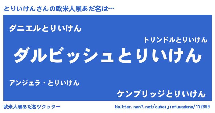 | 男性向けラノベタイトル風あだ名 | 『とりいけんという概念が存在しない退屈な世界 』 |