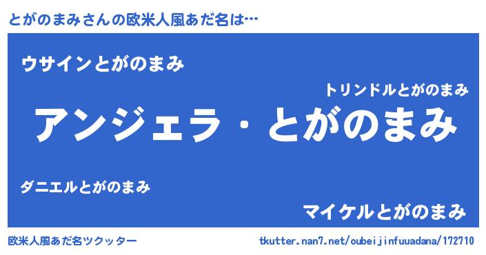 | ピコ太郎風あだ名 | 『トガ一郎』『トコ二郎』『トト太郎』 |