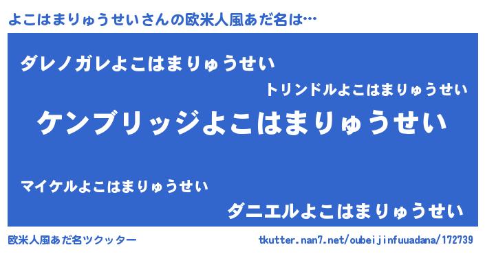 | 女子向けラノベタイトル風あだ名 | 『よこはまりゅうせいなんてお断りですっ。』 |