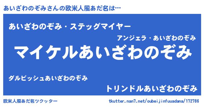 | 男性向けラノベタイトル風あだ名 | 『あいざわのぞみの憂鬱』 |