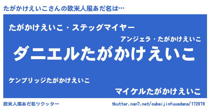 | ヘコむあだ名 | 『たがもー』『たがかけえいこ(笑)』 |