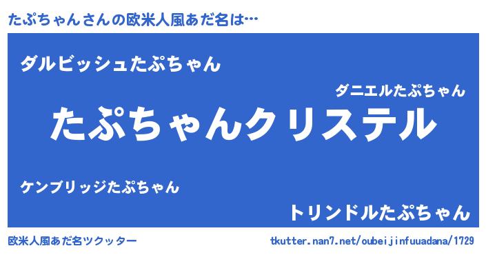 | 女子向けラノベタイトル風あだ名 | 『たぷちゃんの雑貨屋さん』 |