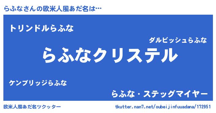 | 意味不明あだ名 | 『らふなフォーエバー』『永久保存らふな』 |