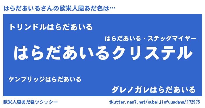 | ファンタジー風あだ名 | 『エターナルハラダアイルー』 |