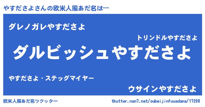 | 男性向けラノベタイトル風あだ名 | 『やすださよという概念が存在しない退屈な世界 』 |