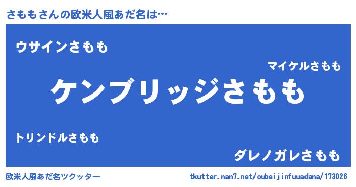| 男性向けラノベタイトル風あだ名 | 『Re:さももから始める異世界生活』 |