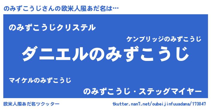 | 男性向けラノベタイトル風あだ名 | 『ノーゲーム・ノーノミズコウジ』 |