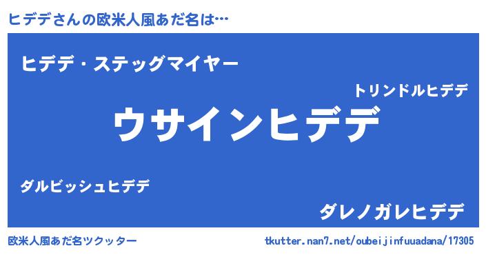 | 男性向けラノベタイトル風あだ名 | 『ヒデデの嫁は女の子じゃないと思った?』 |