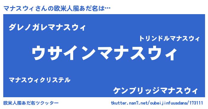 | 意味不明あだ名 | 『とにかく怪しいマナスウィ』 |
