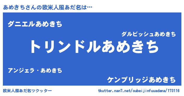 | 男性向けラノベタイトル風あだ名 | 『アメキチスレイヤー』 |