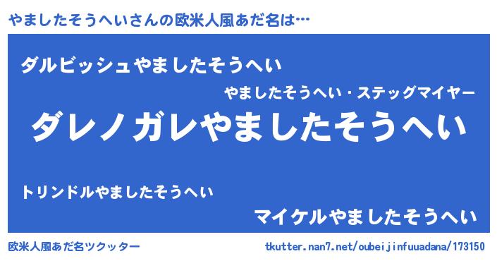 | 男性向けラノベタイトル風あだ名 | 『この素晴らしい世界にやましたそうへいを!』 |