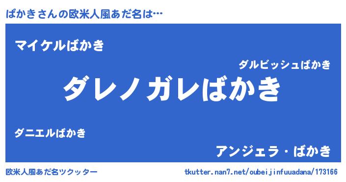 | 意味不明あだ名 | 『住所不定無職ばかき(6歳)』『自称ばかき』 |