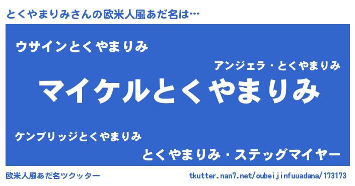 | 男性向けラノベタイトル風あだ名 | 『トクヤマリミアートオンライン』 |