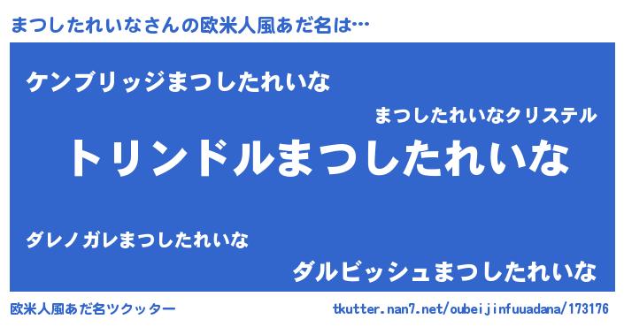 | 男性向けラノベタイトル風あだ名 | 『マツシタレイナスレイヤー』 |