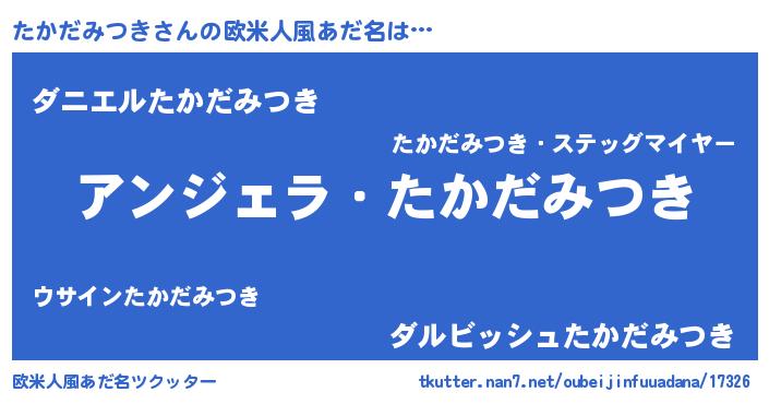 | 男性向けラノベタイトル風あだ名 | 『たかだみつきに滅ぼされるだけの簡単なお仕事です』 |