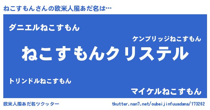 | 女子向けラノベタイトル風あだ名 | 『ねこすもん伯爵の花嫁』 |