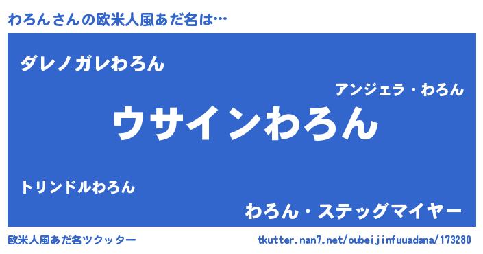 | 男性向けラノベタイトル風あだ名 | 『わろんの嫁は女の子じゃないと思った?』 |