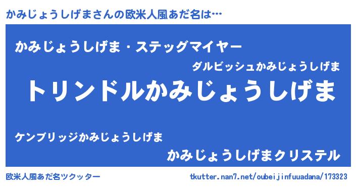 | 男性向けラノベタイトル風あだ名 | 『転生したらかみじょうしげまだった件』 |