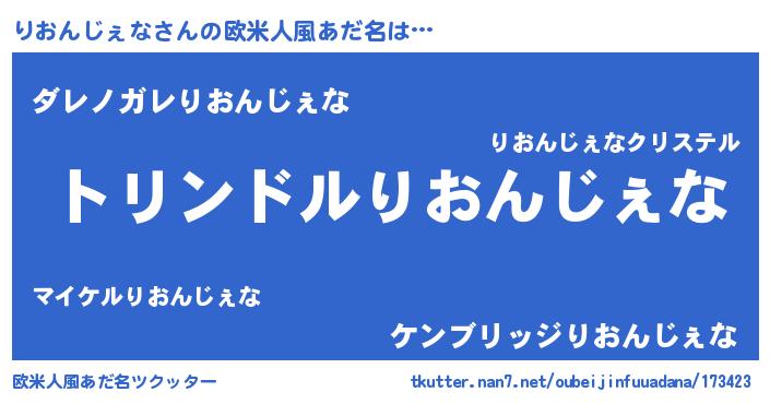 | 女子向けラノベタイトル風あだ名 | 『りおんじぇなの玉の輿計画!』 |