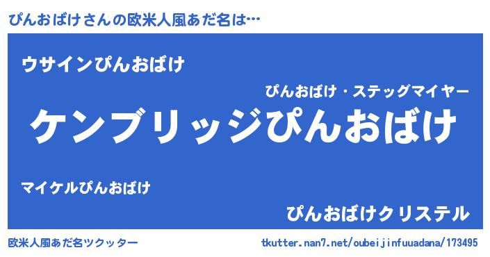 | 男性向けラノベタイトル風あだ名 | 『Re:ぴんおばけから始める異世界生活』 |