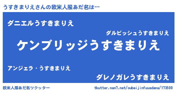 | 意味不明あだ名 | 『自称うすきまりえ』 |