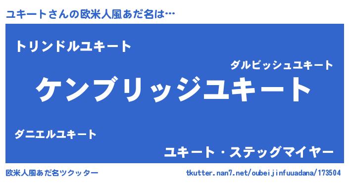 | 男性向けラノベタイトル風あだ名 | 『Re:ユキートから始める異世界生活』 |