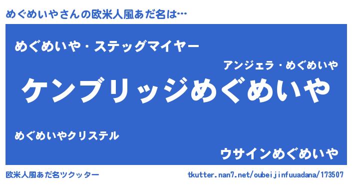 | 意味不明あだ名 | 『自称めぐめいや』 |