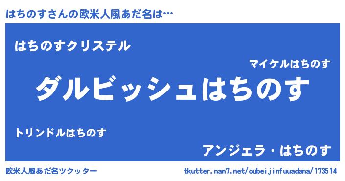 | 男性向けラノベタイトル風あだ名 | 『はちのすという概念が存在しない退屈な世界 』 |