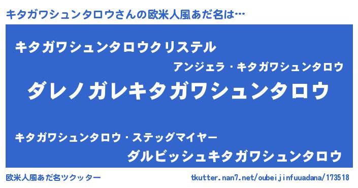 | 女子向けラノベタイトル風あだ名 | 『悪役キタガワシュンタロウに転生したようですが、知った事ではありません』 |