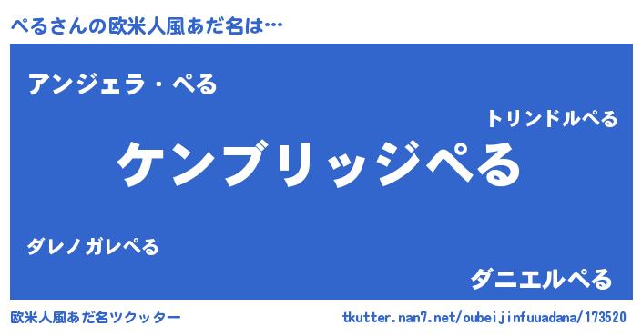 | 男性向けラノベタイトル風あだ名 | 『魔法科高校のぺる』『ペルスレイヤー』 |
