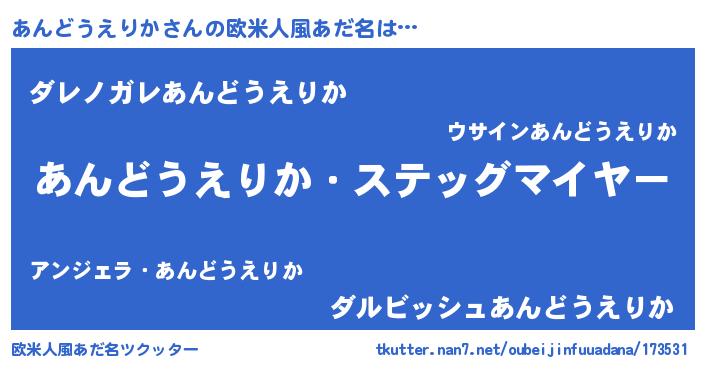 | 意味不明あだ名 | 『住所不定無職あんどうえりか(91歳)』 |