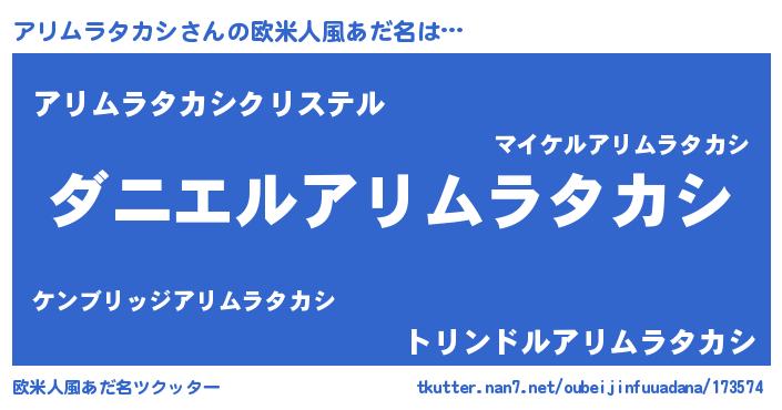 女子向けラノベタイトル風あだ名 | 『死神アリムラタカシの再婚』 |