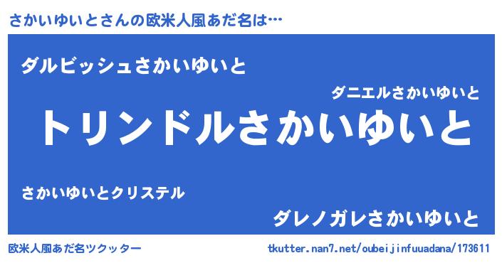 | ヘコむあだ名 | 『さかいゆいと(遠い目)』『豆乳』 |