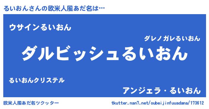 | 男性向けラノベタイトル風あだ名 | 『るいおんという概念が存在しない退屈な世界 』 |