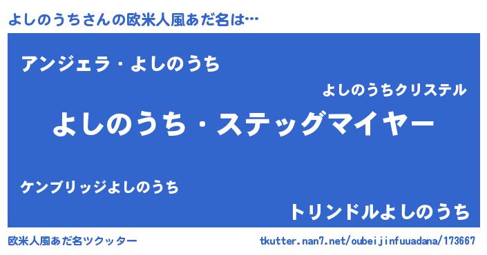 | 男性向けラノベタイトル風あだ名 | 『うちのよしのうちが世界を掌握している!』 |