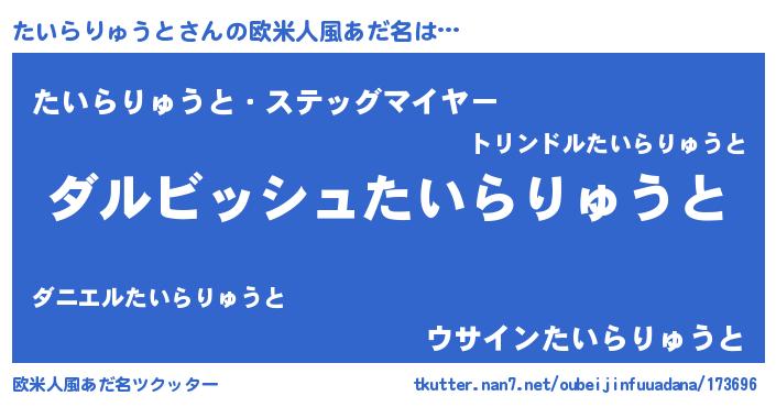 | 胡散臭い通販商品みたいなあだ名 | 『絶対に幸福をもたらす健康食品…その名も「たいらりゅうと」』 |